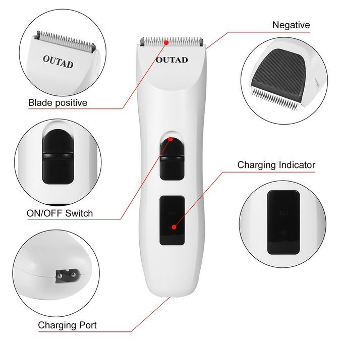 1*OUTAD Low Noise Rechargeable Cordless Pet Dogs Cats Electric Grooming Clippers