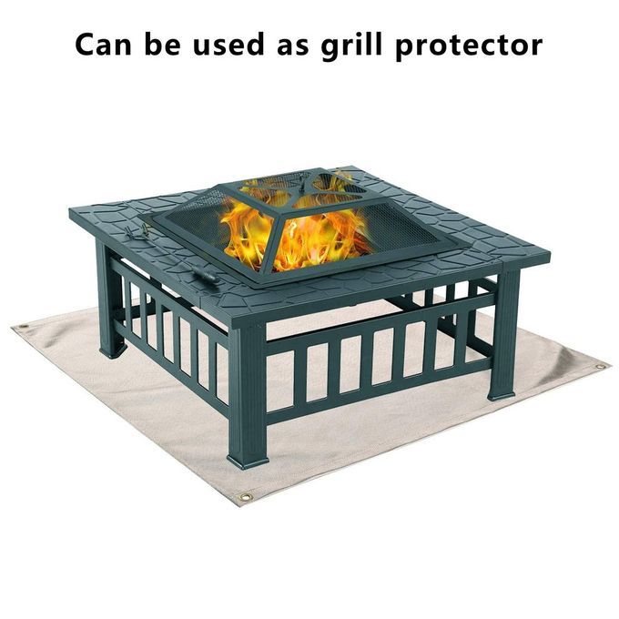 Outdoor Amping Fire Pit Grill Ground Prote Tion Mat Temperature Resistan E-Beige-60*60cm
