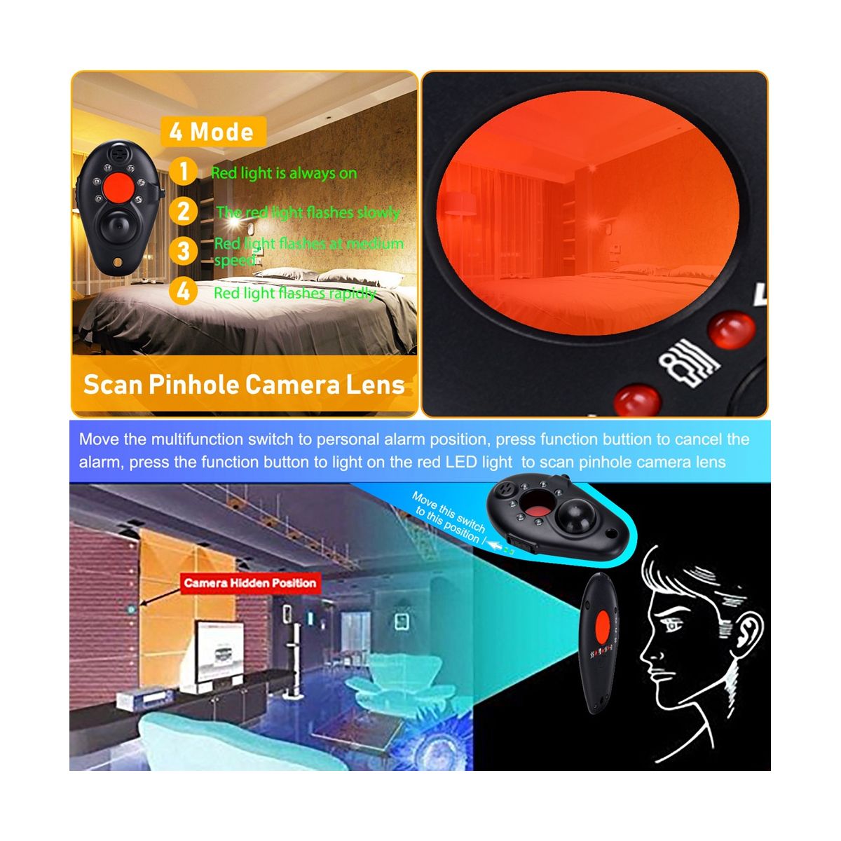 Scan Camera Lens Distance: 15-32 feet in room