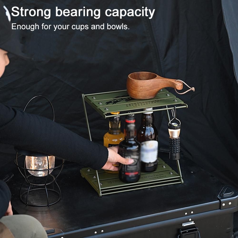 Buy Outdoor Camping Cups Bowls Folding Storage Rack Aluminum Alloy 2-tier Storage Bracket Picnic BBQ Tableware Cookware Storage Rack Campsite Tools Shelf in Nigeria