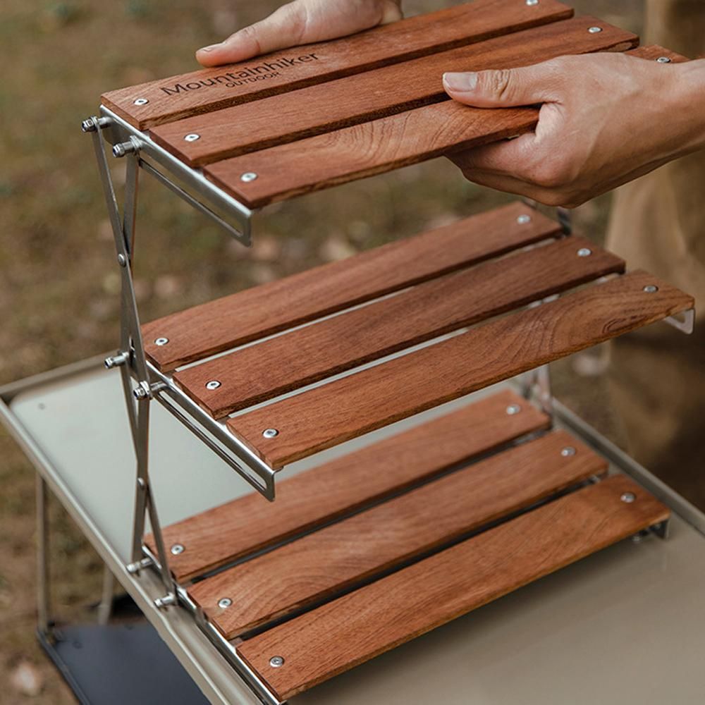 Buy Outdoor Camping Cups Bowls Folding Storage Rack Wooden Three-tier Storage Bracket Picnic BBQ Tableware Cookware Storage Rack Campsite Tools Shelf in Nigeria