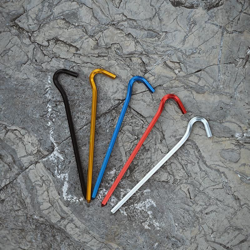 Buy Outdoor canopy tent ground nails hexagonal ground nails hexagonal aluminum alloy lengthened bold question mark ground nails camping nails cross-border silver in Nigeria