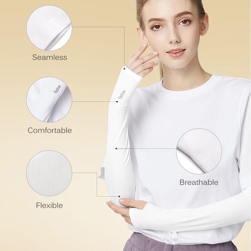 【Soft ice silk touch】 Moisture absorption sleeves with soft silky touch feeling to keep your arm comfortable in hot summer.