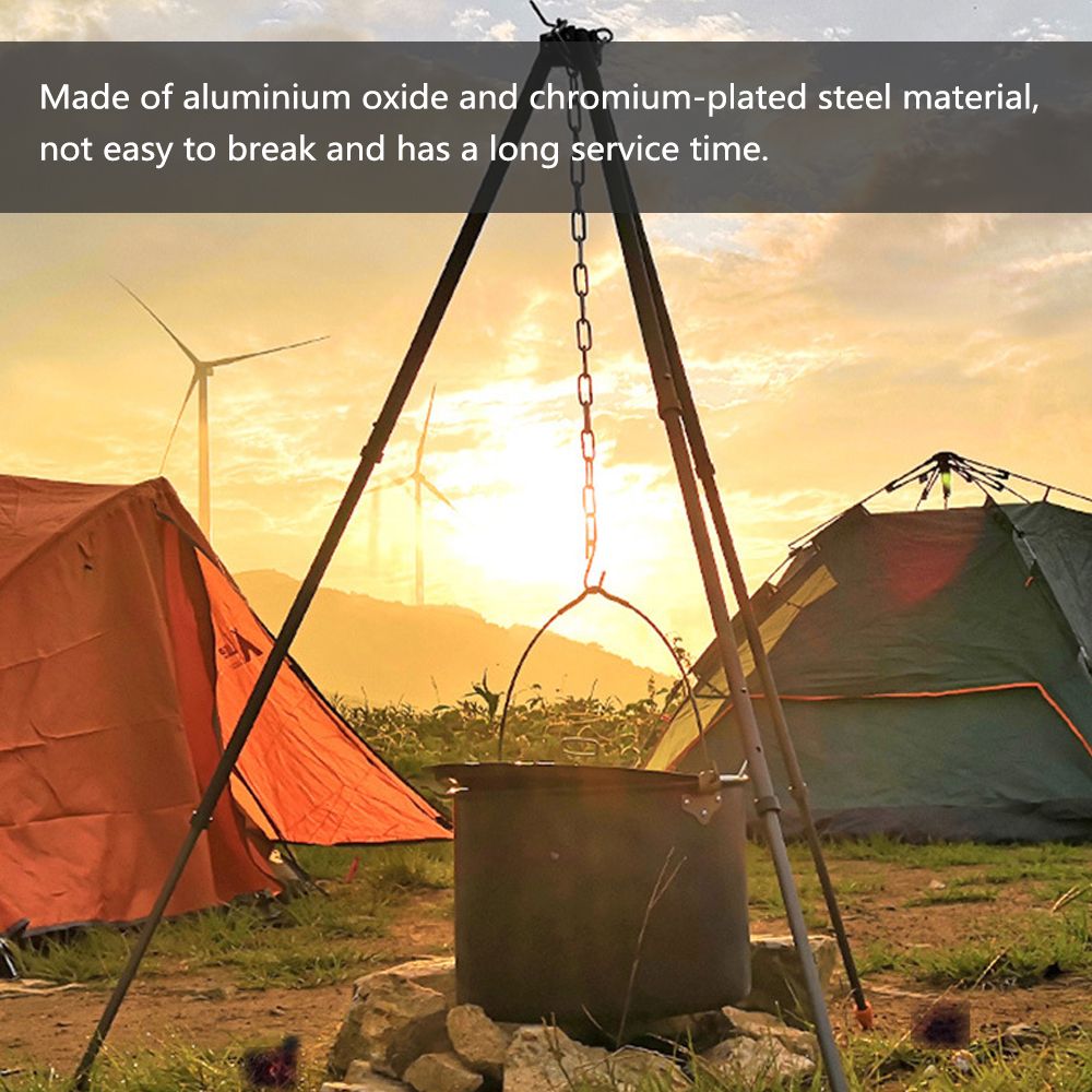 When you and your family or friends are camping outdoors, you need this fire pit tripod, you can use it to hang-up your food and heat them, and complete a dinner with your family or friends. You can also sit by the campfire and chat, enjoy the fun of camping, come and try it, it will not let you down.