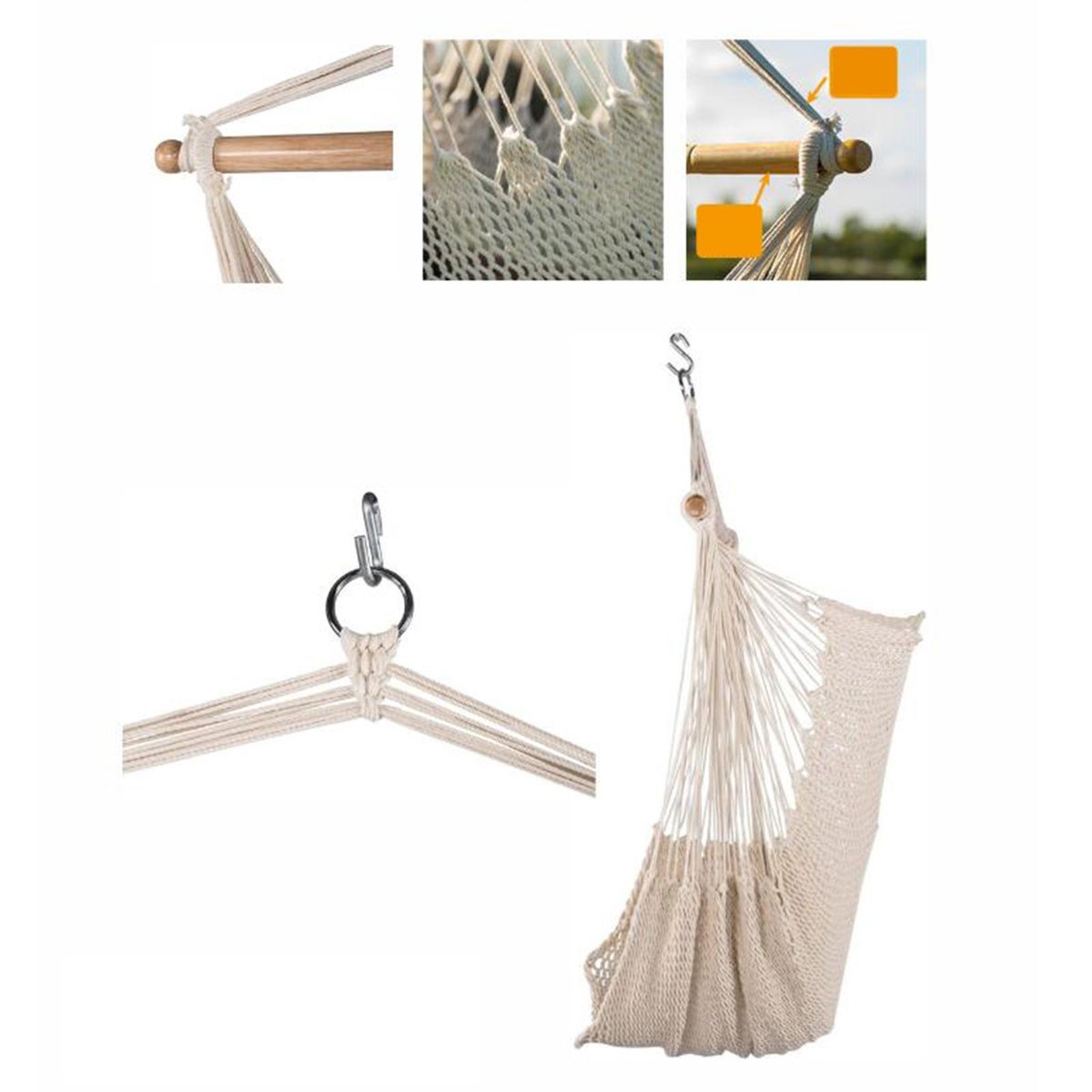 【High Quality Hammocks】Constructed of woven high quality cotton thread,wear resistant and comfortable, skin friendly and breathable, high bearing capacity up to 120 kg.