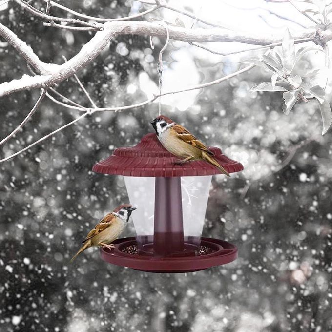 The bird feeder is portable in size and lightweight, it can be placed on the ground or suspensible. Made of clear sturdy plastic, high hardness do not easily break down. Pavilion shape design, great for decorating courtyard, garden, patio, backyard and front porch, making your life interesting.