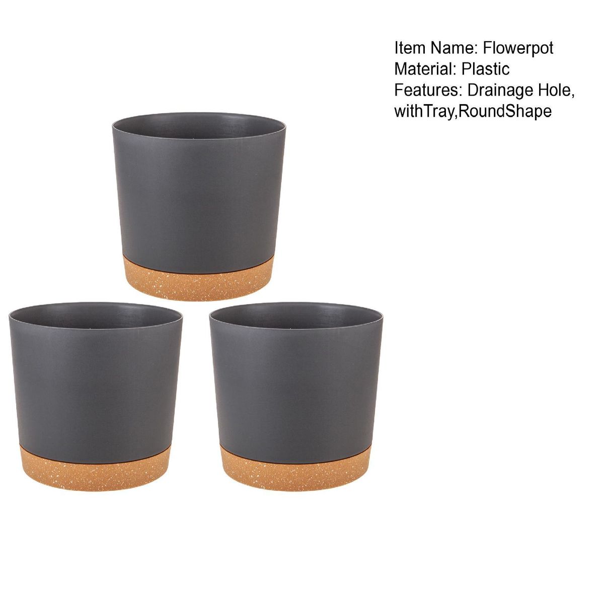 Buy Outdoor Plant Pot 3-piece Set Round Indoor Plant Pots with for Balcony Black Gray in Nigeria