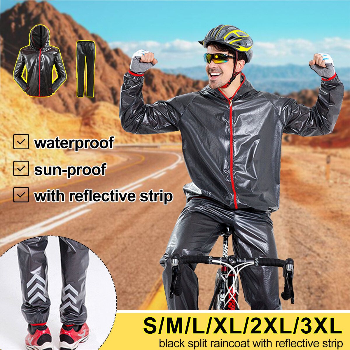 Similar ItemsDescriptionOutdoor Riding Suit Split Raincoat Reflective Strip Cycling Raincoat Rain Pants