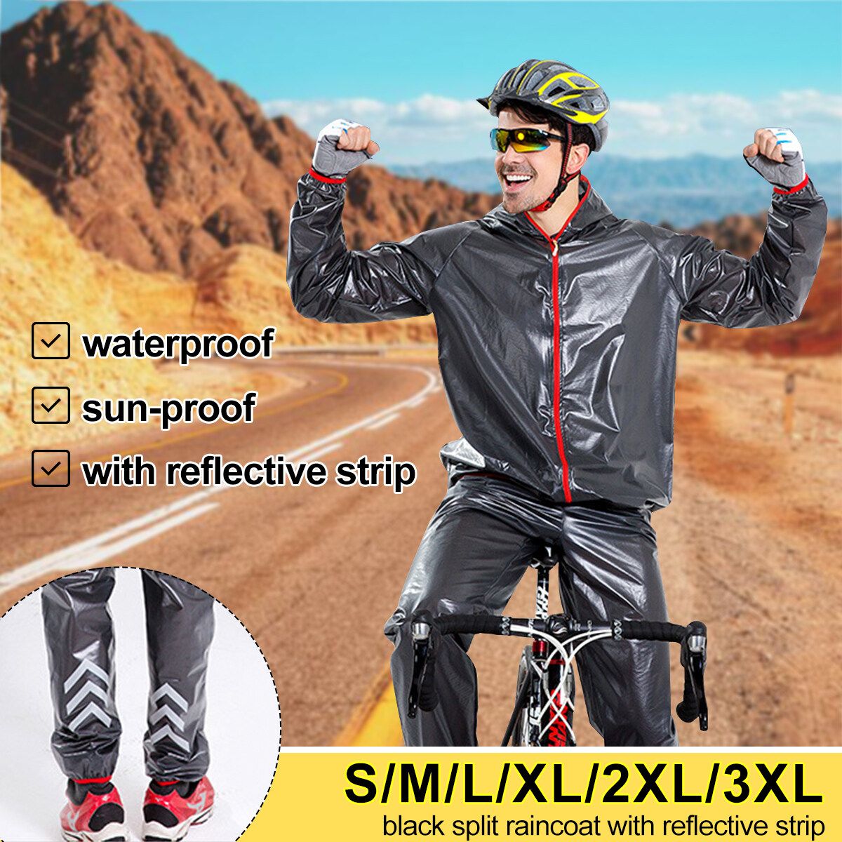 Similar ItemsDescriptionOutdoor Riding Suit Split Raincoat Reflective Strip Cycling Raincoat Rain Pants