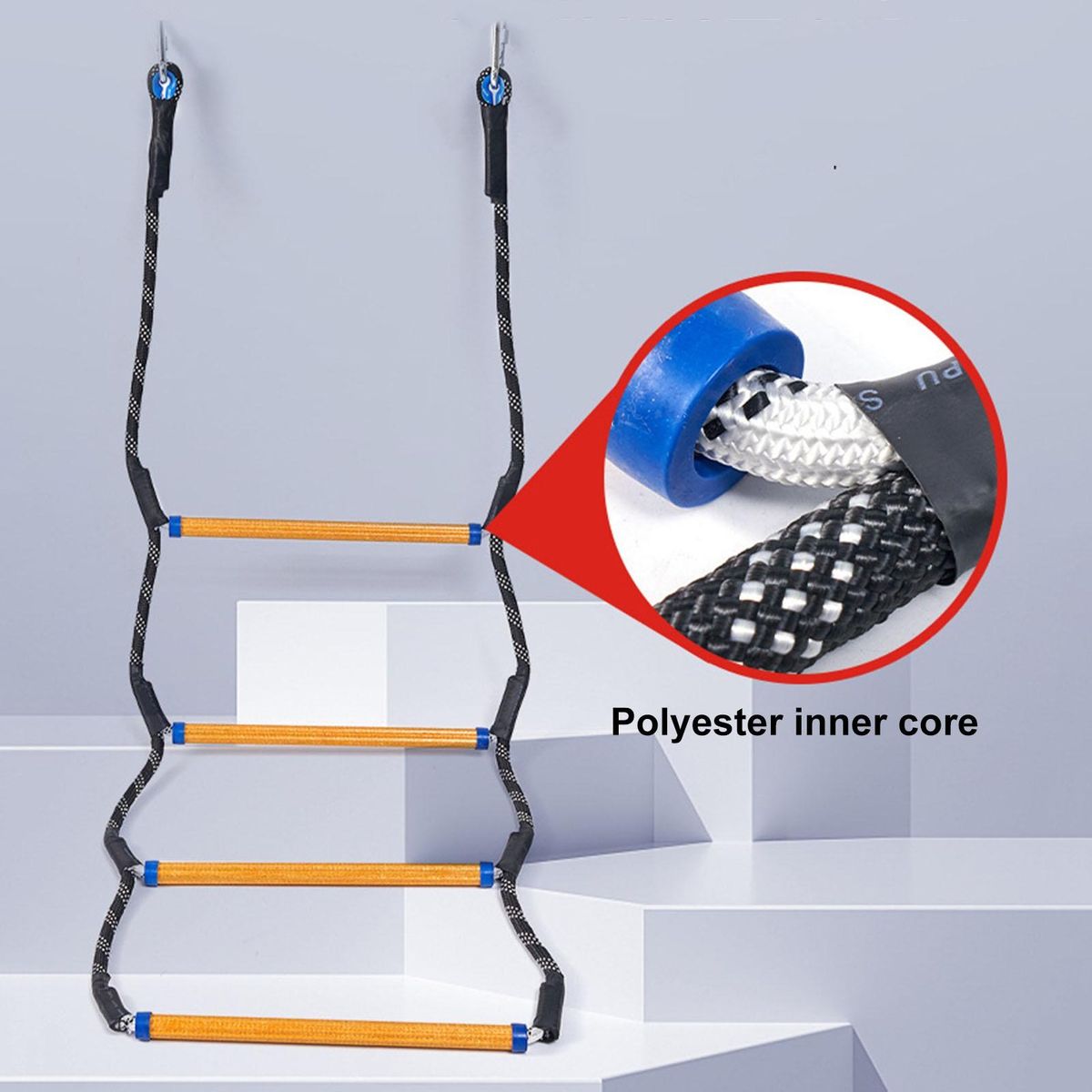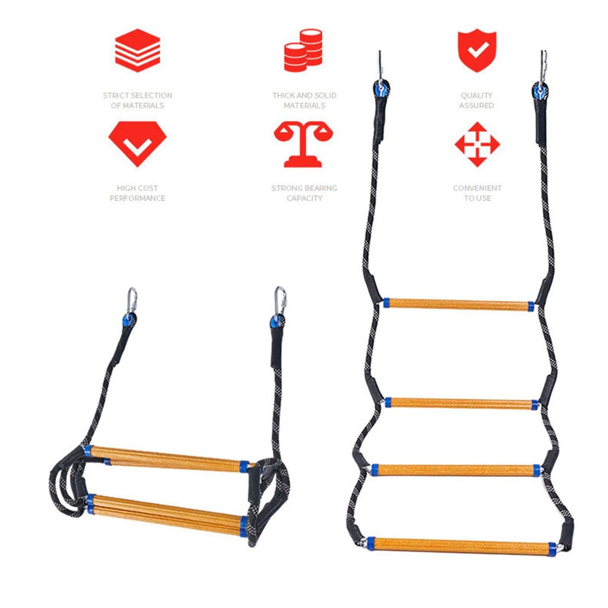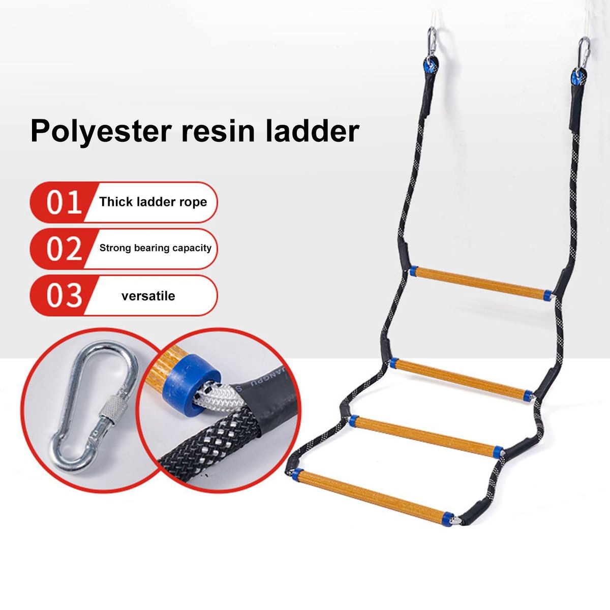 Crafted from high-quality anti-ultraviolet nylon and high-strength resin, this ladder is built to last. it boasts an impressive load-bearing capacity of up to 150kg, making it suitable for both adults and children. safety is a top priority, which is why the ladder's steps feature a grainy texture for slip resistance even when wet.