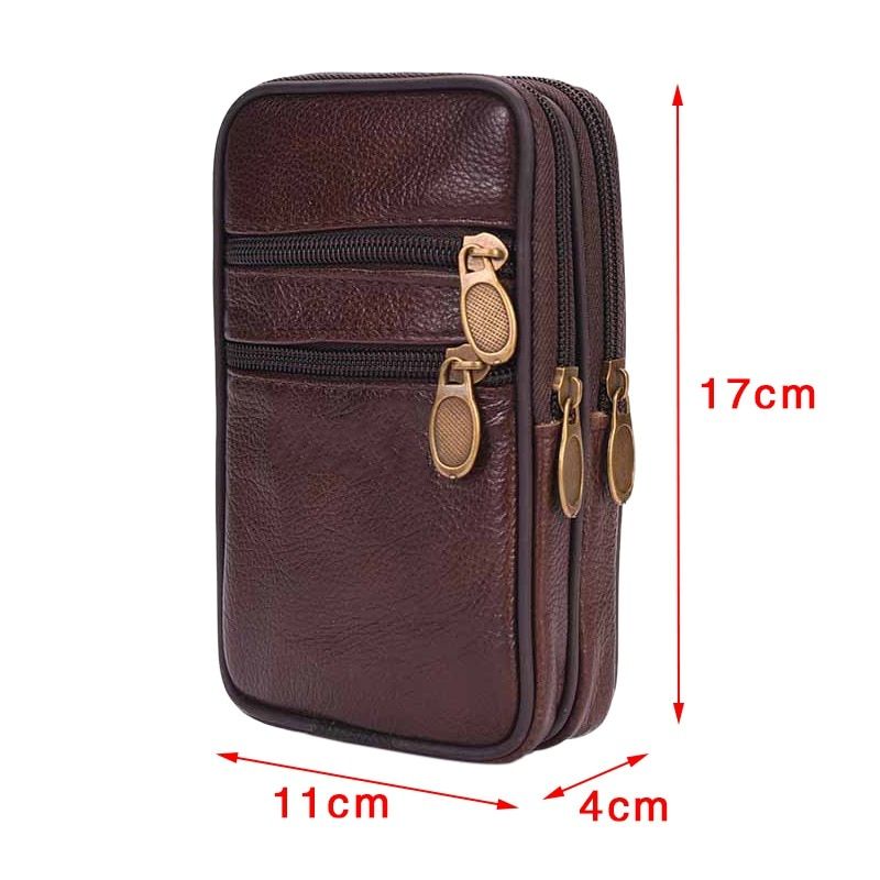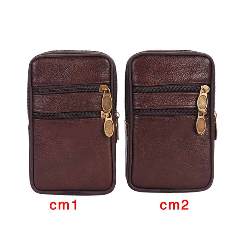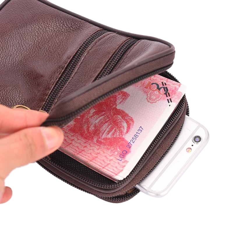 1X Outdoor Running Bags Men Leather Waist Pack Bag Double Zipper Cell Mobile Phone Case Coin Purse Pocket Pouch Male Pro