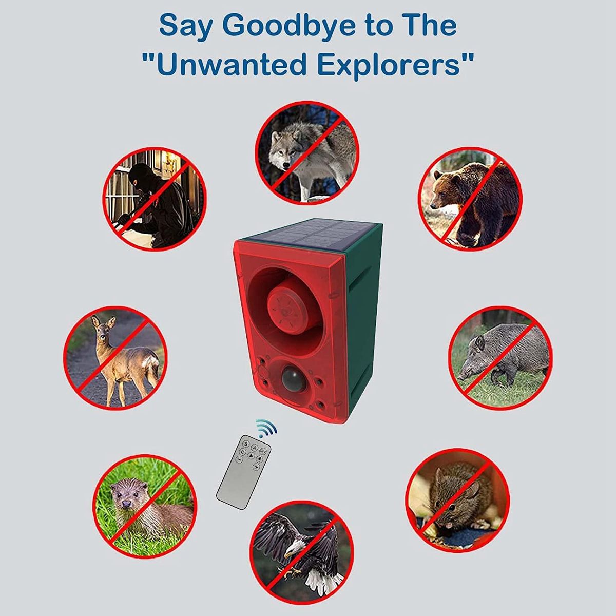 [Alarm sound can be changed] The upgraded solar sound and light alarm is equipped with a remote control and a built-in microphone, which can record your desired alarm sound. You can also adjust the siren volume