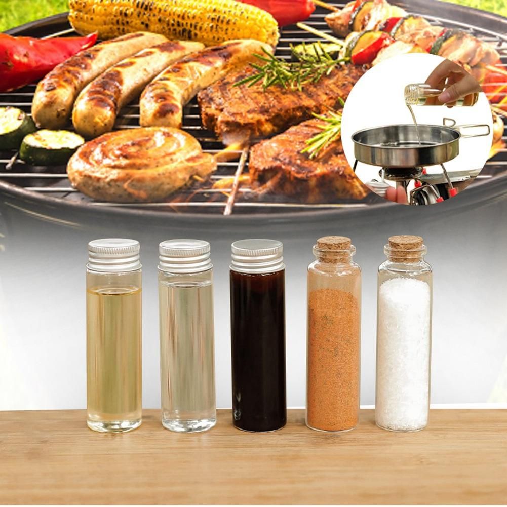 Comes with 9 spice bottles: country spice kit, 4 cork bottles for powder seasonings and 5 aluminum bottles for seasonings.