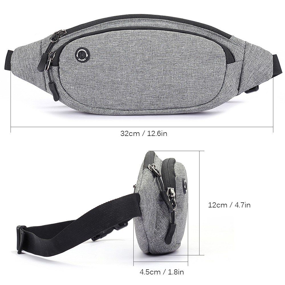 This waist pack features 3 independent zipper pockets, earphone port, and adjustable waist strap, great choice for those who love sports and traveling.