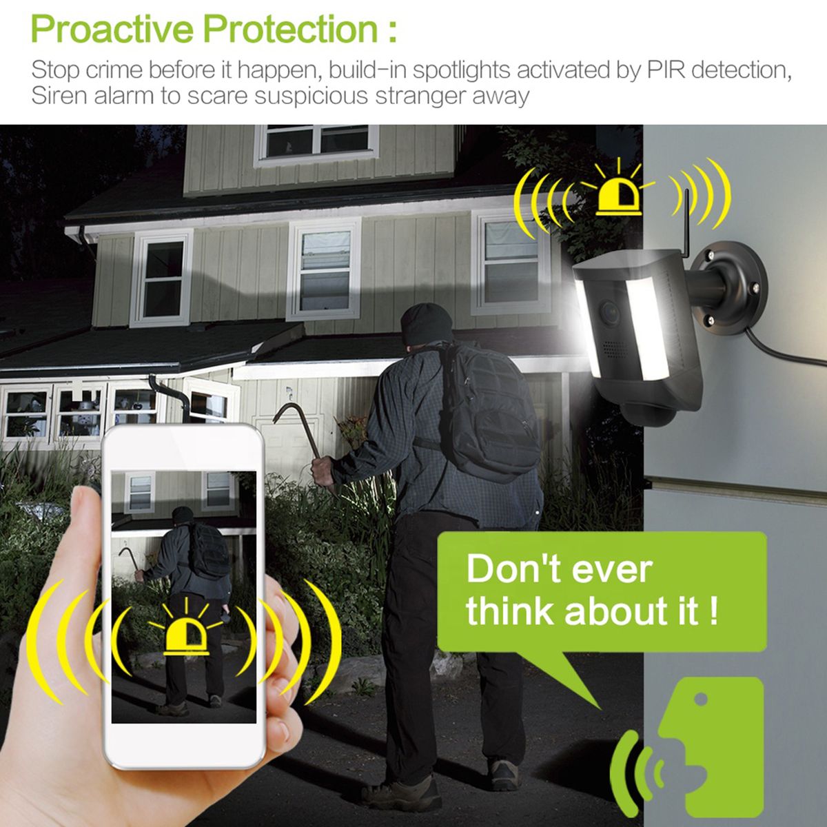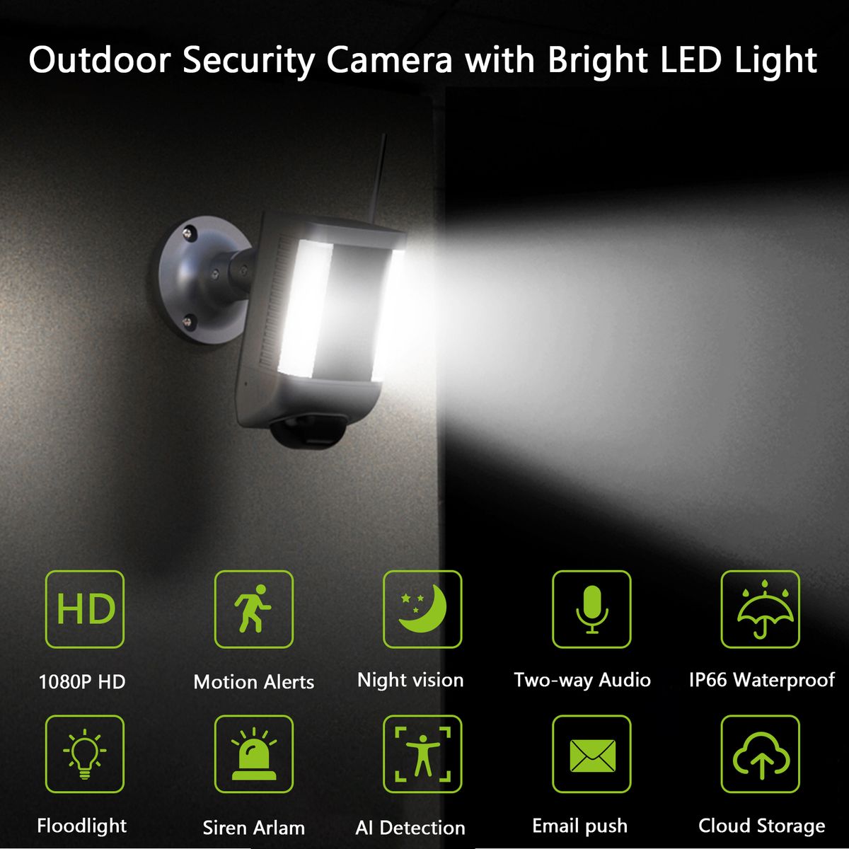 1080P Full HD Video:The Spotlight security camera has 1920*1080 resolution,provides you with 2MP high definition video.When camera detects suspicious object,the floodlight will turn,you can get color video even in the darkness
