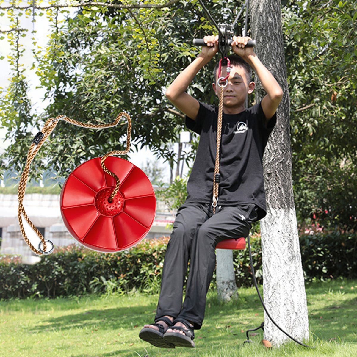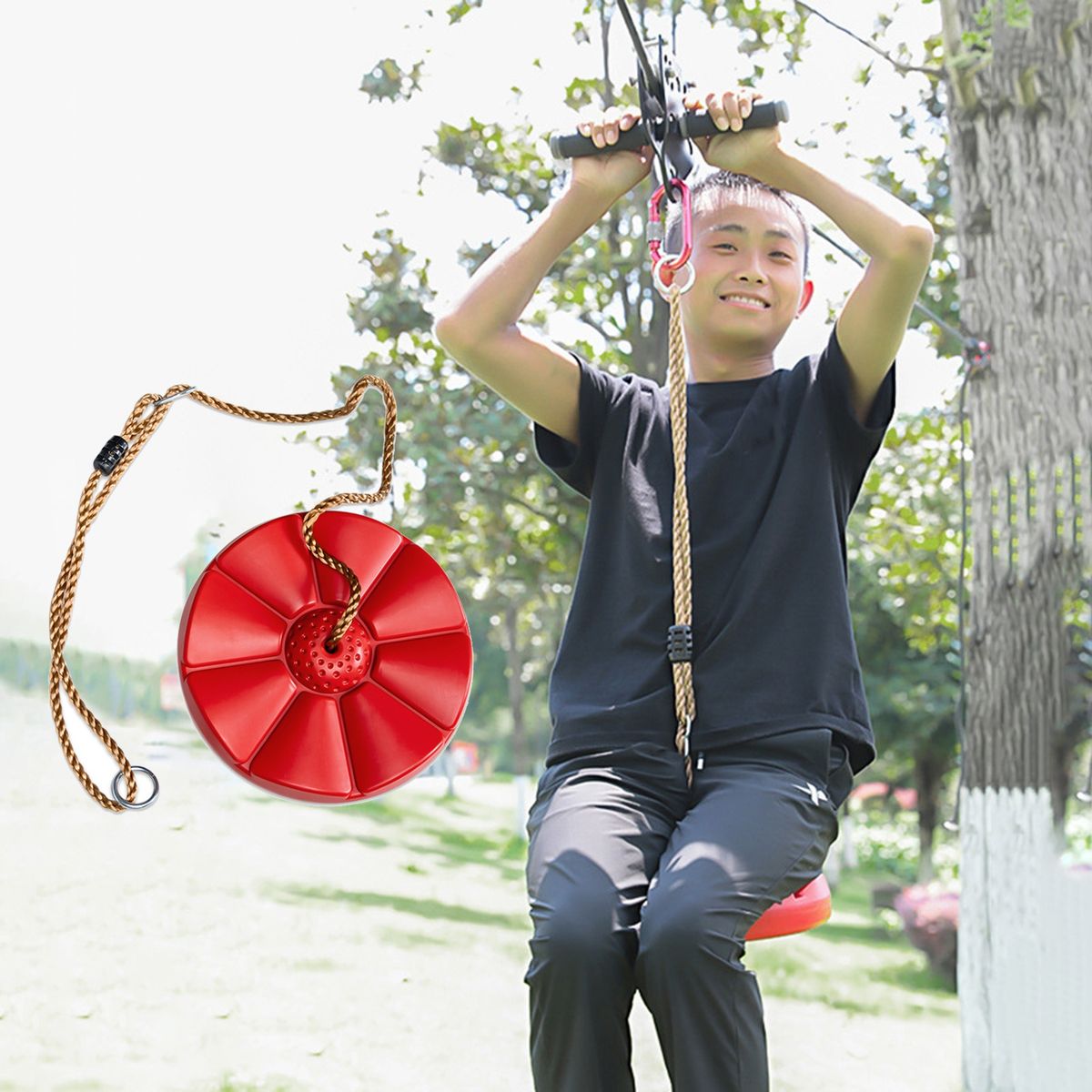 This tree swing features strong load bearing, high strength and not easy to break, which is very suitable for children to use in the backyard, porch or other places where they can be hung safely.