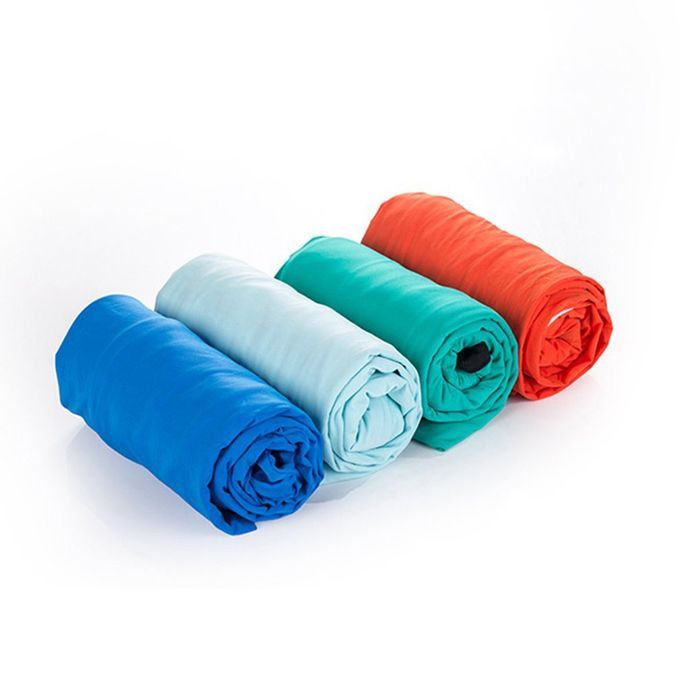 Spe ifi ations: Size: 80*200 m Material: 80% polyamide fiber + 20% elasti fiber olor: blue, orange, light blue, dark blue (optional) A li ation: amping, hotel, train, offi e