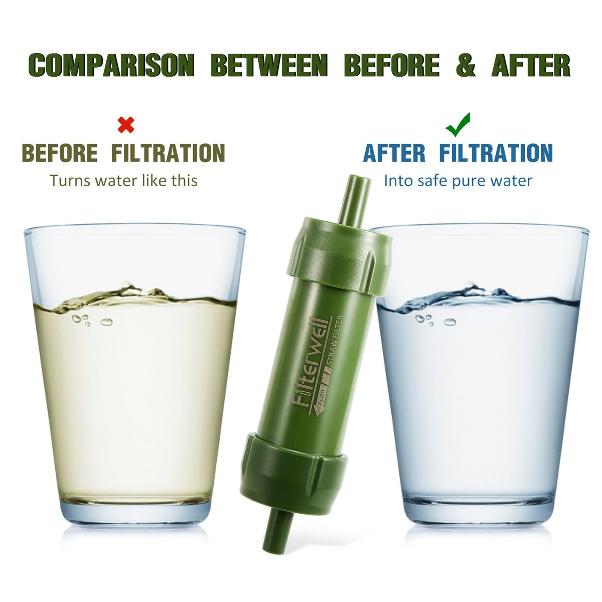 This water filter straw can effectively remove the particles and impurities in the water to provide clean, safe water. It is perfect for outdoor emergency, camping, hiking, backpacking, etc.