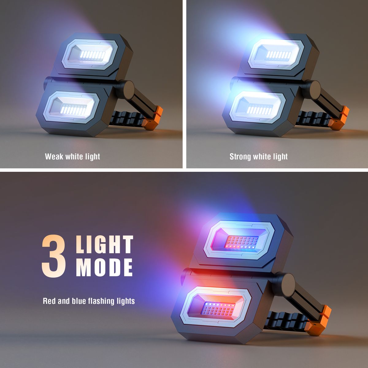 2 BRIGHTNESS amp; BLUE/RED LIGHT STROBE: The light has two adjustable brightness, you can decide the brightness according to different needs. The 100% brightness allows the battery to last for about 6 hours and 30% brightness for 12 hours. You can also choose blue/red light strobe as you like. The light is 360 deg; rotatable, you can adjust the angle to decide the lighting direction.