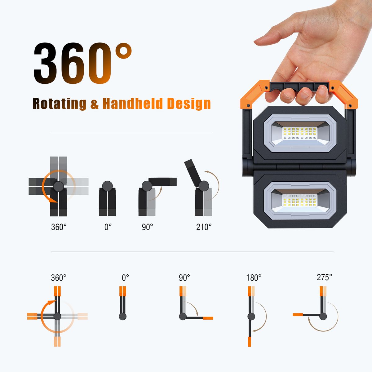 WIDE APPLICATION: The light is designed with proper size of 19.5 x 16.5 x 4.3cm (folded size) and weighs 700g, so it is very convenient for carrying at outdoors. Perfect for all kinds of outdoors activities, such as camping, hiking, picnic, trekking and so on. With a light at outdoors, you can see clearly in the dark and keep you safe at night.