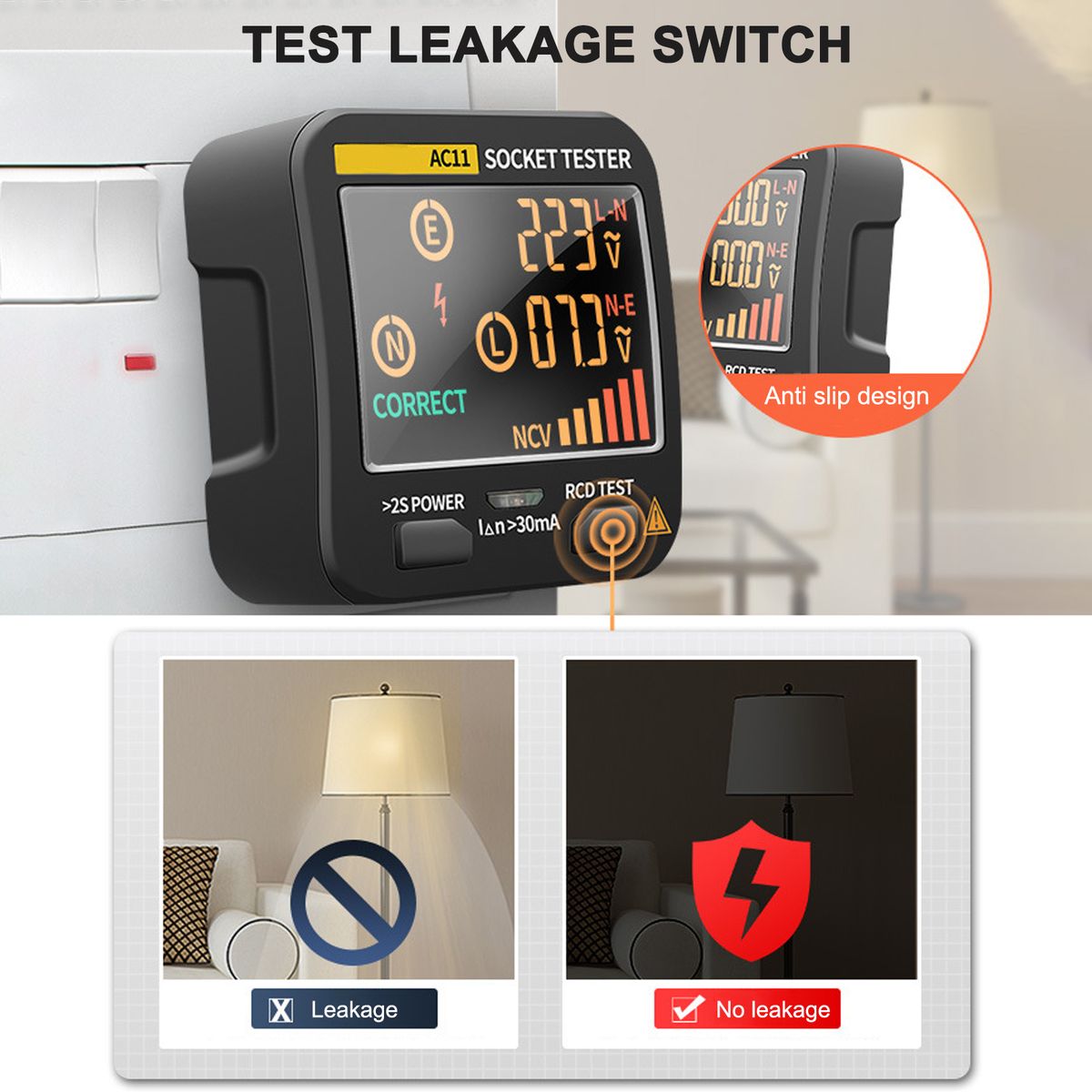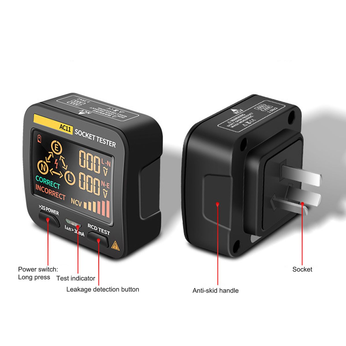 Five functional advantages: color display, leakage protection, zero fire line identification, automatic shutdown and non-contact detection.