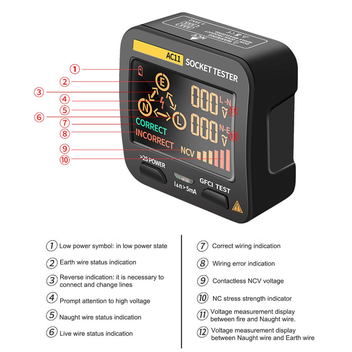 Wide Application - Widely used for electric maintenance testing, office sockets testing, power strips testing and wall sockets testing in school, laboratory, factory and other social field.