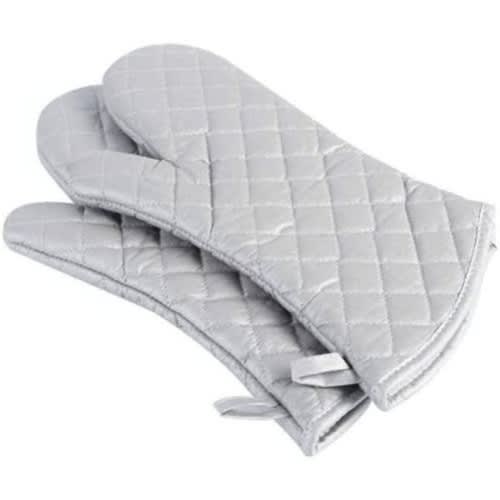 The oven mitts the surface layer is made of Silver coating, which makes it comfortable to wear, a pleasant grip and is gentler on the skin.Use to hold hot pots, pans, plates, bowls and trays, and also place any hot item straight from the stove top, microwave or oven onto the pot holder. Make the most of your imagination using it.Each oven mitt features a cotton loop inside so they can be hung in a cabinet, near the grill or in a pantry.Package included1* Pair oven mitts