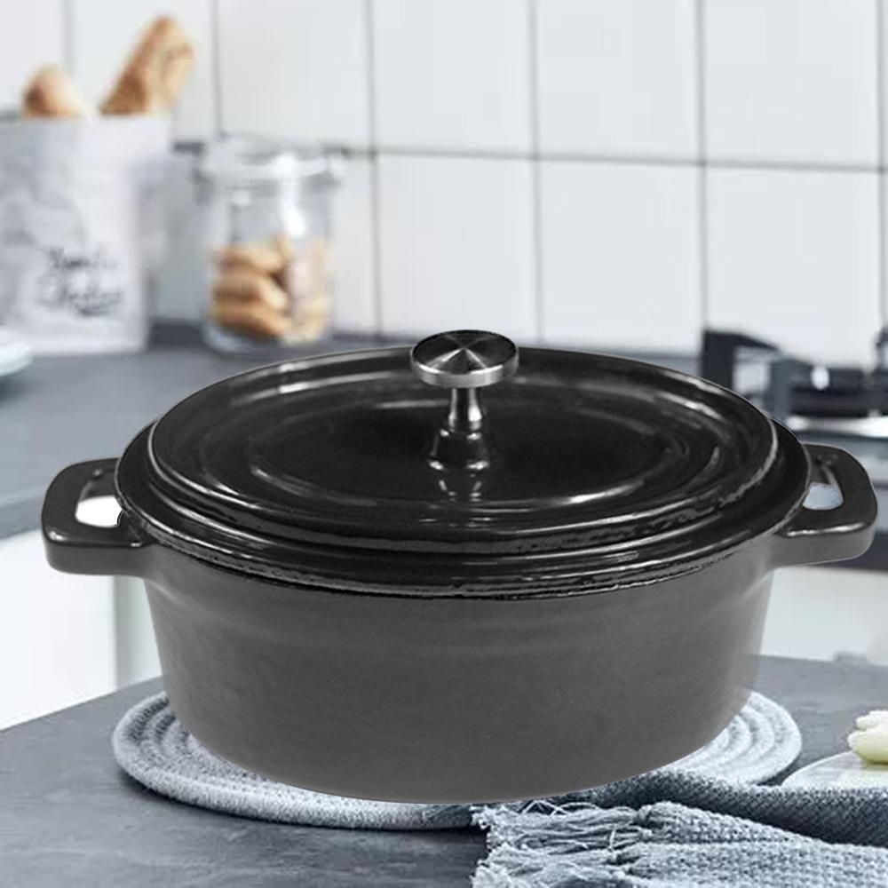 Mini Dutch Ovens Enameled Cast Iron Covered Casserole Anti - Scalding Oval Pot Kitchen Cooking Pot Cookware Feature: 1.This enamel pot is made of heavy cast iron, thick and heavy, with even heating, good heat storage and best cooking performance. 2.The outer enamel coating guarantees absolute food safety; It can be used to pickle, fry, roast, stew, boil and store food. 3.It is suitable for gas stoves, induction cookers, electric ceramic stoves, ovens and other electrical appliances, and is easy to clean ( not suitable for dishwashers and microwave ovens ). 4.It's with user friendly handle, anti - scalding, and easy to carry. : Name: Dutch Ovens Enameled Cast Iron Covered Casserole Oval Mini Pot Color: red, black Material: cast iron Size(about): 12 * 8.5 * 5 cm/ 4.72 * 3.35 * 1.97 in Features: Cast iron enamel pot, heated evenly and cooked perfectly; Suitable for various household appliances; User friendly anti-ironing handle; Easy to carry; Beautiful appearance, necessary for home List: Dutch Ovens Enameled Cast Iron Covered Casserole Oval Mini Pot * 1 Round -Cast iron enamer pot Item: Cast iron enamer pot Material: cast iron Coating: enamel Diameter: 10cm/12cm/14cm Height 5cm/6cm/7cm Weight: 1kg/1.55kg/1.75kg Features: Heavy body uniformly heated it can maximize keep the nutrition of food Microwave oven cannot be used Note for enamel pot: 1. The first time use this products please wash it carefully with warm water and neutral detergent. 2.Use neutral or special lotion products daily to prolong its service life. 3. Avoid sudden temperature changes. When the temperature of the pot is high, it is not easy to immediately pour cold water or put the pot in cold water to prevent the enamel layer from falling off. 4. Avoid excessive heating. This product has extremely strong thermal conductivity. Heating at high temperature will overheat the pot. It is recommended to use medium-low heat. 5. Wipe clean as soon as possible after use, and put it in a ventilated place, do not put it in a damp place for a long time. 6. Excessive ps are strictly prohibited to prevent damage to the enamel layer. 7. Use wooden or silicone spatula as much as possible, avoid using metal shovel and steel ball, so as not to scratch the enamel and affect the service life of the pot. 8. As the enamel pot is made of sand mold, a lot of gas will be generated when the molten iron is poured into the mold, so the finished product may have trachoma pores and so on. The enamel pot layer is sprayed upside down, so Some silver-gray iron is exposed, not a quality problem. After cleaning, apply vegetable oil on the pot mouth to prevent rust. 9. The lid of the modeling pot is a complex and irregular structure. During the firing process, uneven gravity will be generated, which causes a certain gap between the body and the lid. This is normal and does not affect the use. If you mind the above situation, please considered carefully when buy it.