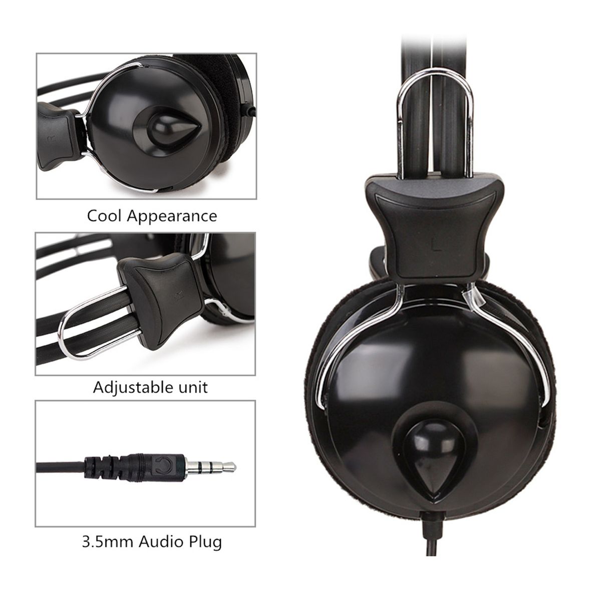 Over-ear Headphones Earphones with Cable 3.5mm Plug for Computer Laptop Music Listening Game Video Watching