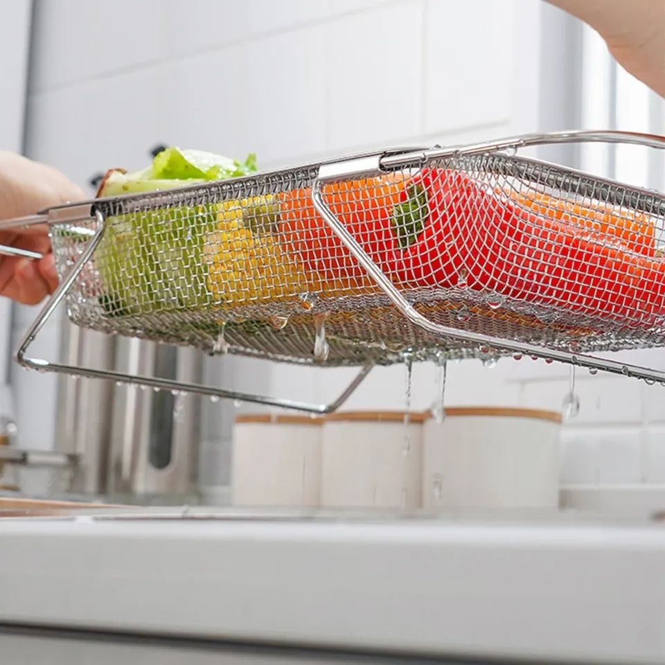 Features:1. Easy to use and versatile: stretch over your kitchen sink to rinse veggies and fruits, drain pasta, thaw frozen food or use as a dish rack to air dry utensils, cups and small plates. It's also can be used on your counter as a basket.