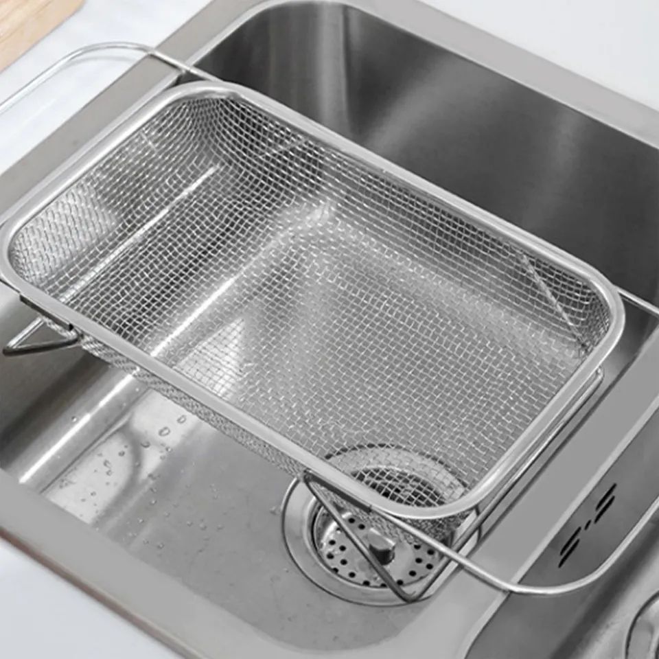 packing List: 1*Drain BasketThe baskets concave mesh net easily catches and sifts, strains or drains small ingredients.Telescopic handle, to meet your needs to the greatest extent, suitable for different sizes of sinks.High quality thick food grade stainless steel material, corrosion resistant, no rust, firm and stable structure.