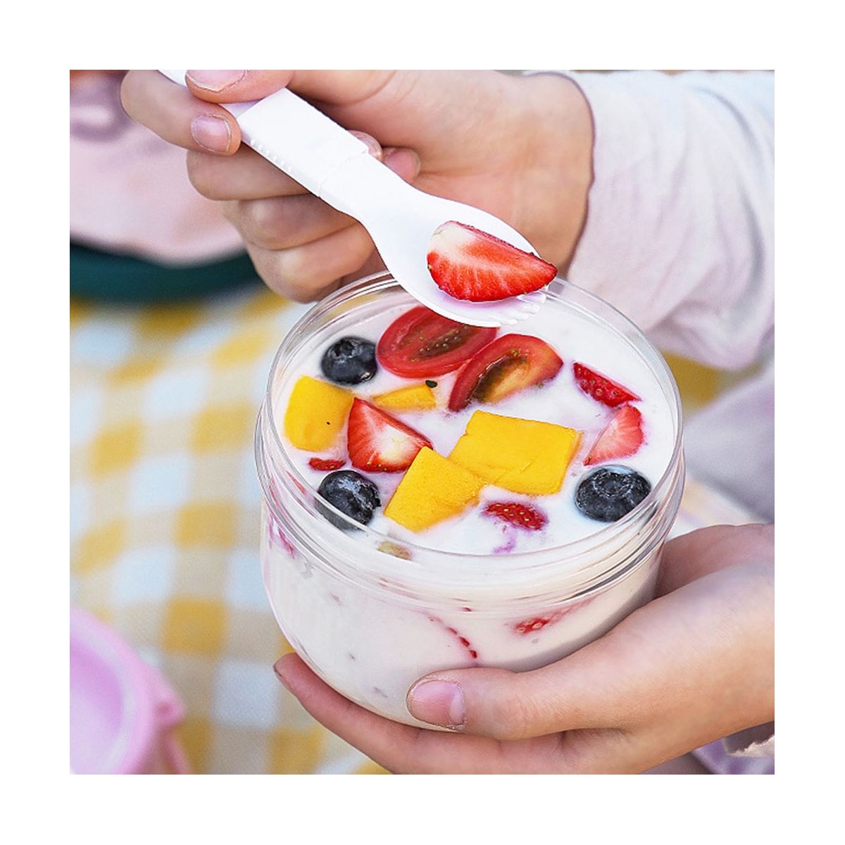 Packed with mixed oats yoghurt milk and fruit this oatmeal cup can be in the freezer overnight to prepare a breakfast for the day