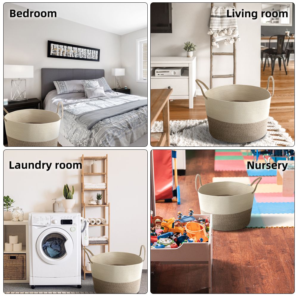 Durability handles design, foldable, easy to move and take away, free awesome practical cotton large storage baskets. Soft yet sturdy enough to stand up on their own