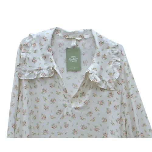 Ladies Floral See Through Blouse With Puff Sleeves Lbs-9411