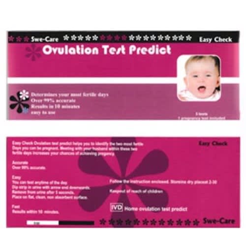 Each pouch contains 5 ovulation test strips and one pregnancy test strip