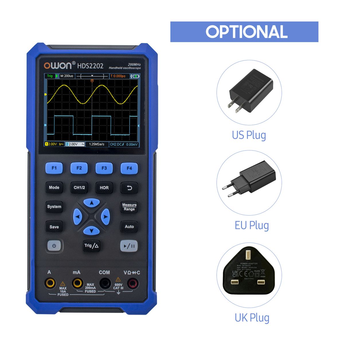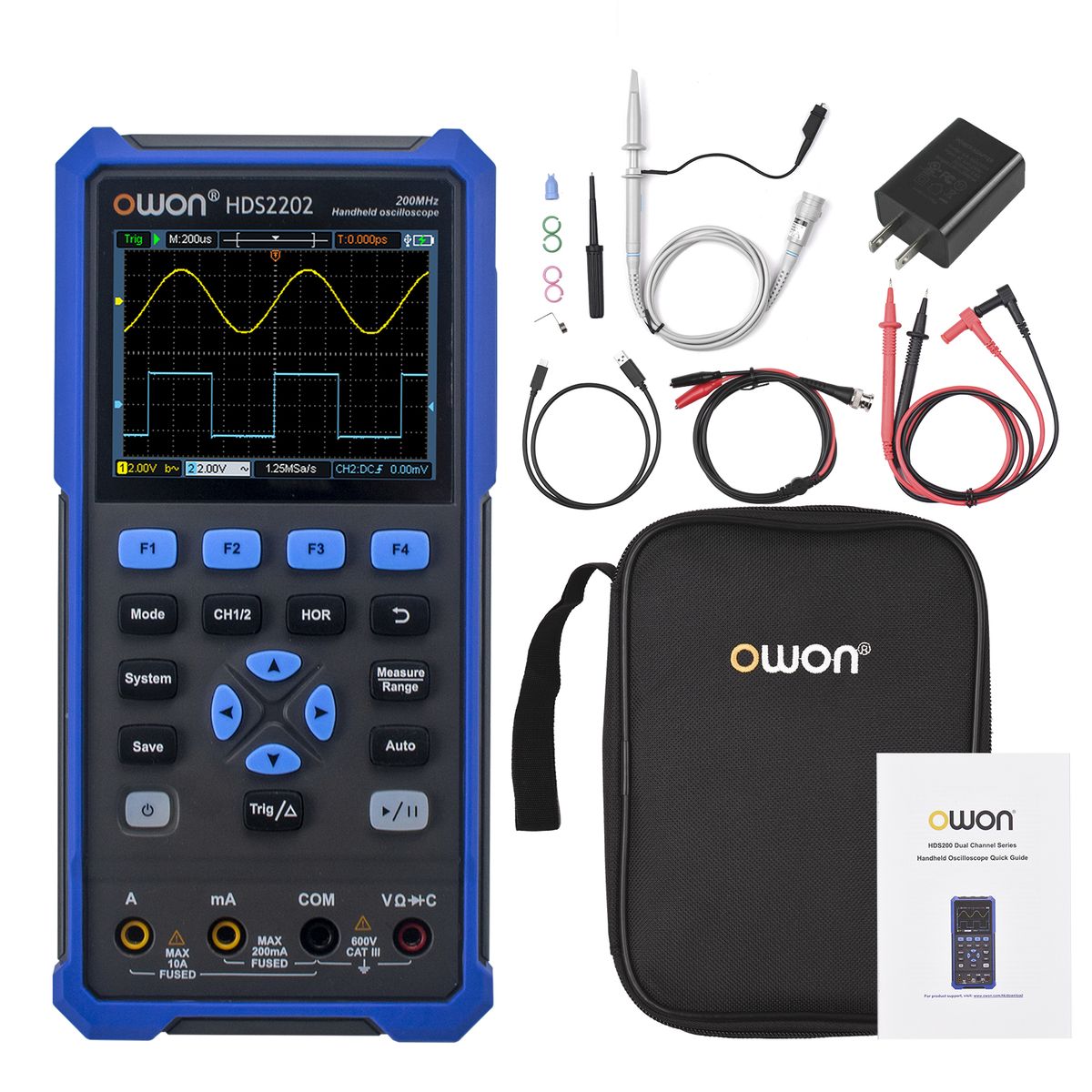 OWON HDS2202 Handheld Digital Oscilloscope Multimeter 200MHz 1GSa/s Dual Channels Oscilloscope True RMS 20000 Counts Multi Tester 3.5-inch Color LCD Rechargeable Type-C Interface