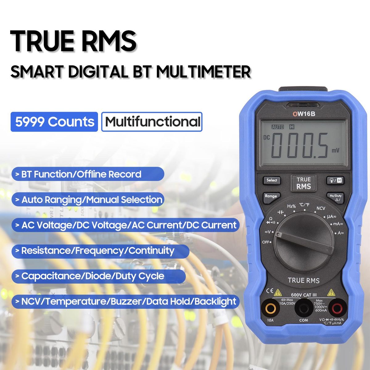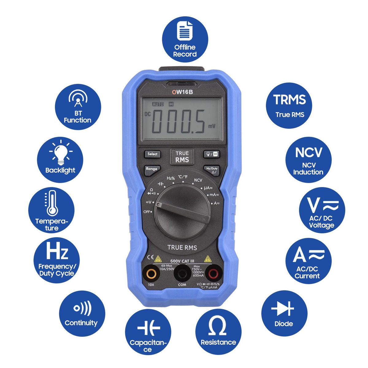 Buy OWON OW16B Digital BT Multimeter with Offline Record 5999 Counts True RMS Auto-ranging Multifunction Electrical Tester with Backlight Voltage Meter NCV Test Measuring Temperature/ AC DC Voltage Current/ Capacitance/ Resistance/ Frequency/ Diode/ Continu in Nigeria