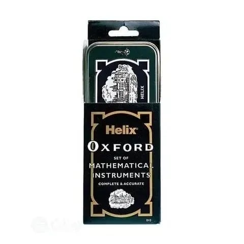 This mathematical set is the perfect maths set for students studying a range of subjects including maths, geometry, trigonometry and design technology. The set includes a 9cm Pencil, 15cm /6" rule, a Stencil, Metal Self-centring compass, 180 degree protractor, set squares, timetable/fact sheet , sharpener and eraser all presented neatly in a metal storage tin featuring the traditional super Oxford design.The Oxford range has a worldwide reputation for quality and excellence with an enviable brand that is known for using its traditional values of product development and applying them to modern day curriculum requirements. Known across the globe as the world's best maths set and brand leader in the UK, the Oxford Maths Set has sold over 100 million units.Founded 130 years ago in the Midlands, England with a view to offer customers high quality, sturdy and durable stationery to use every day in school, at home or in work. Today Helix's product range may have grown from where it all started 130 years ago but Helix still has the love and passion for stationery that it always had, as well as the desire to offer people the best of British design and function in their everyday stationery use.