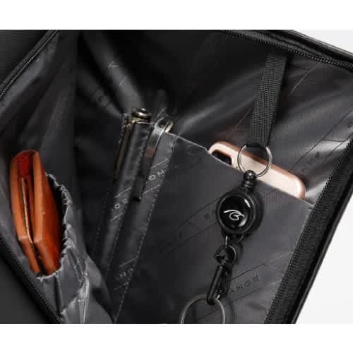 Conveniently access the exterior vertical pocket, unveiling a distinctive Steel Blue lining, for storing accessories and everyday items. Made with durable materials for everyday use including weather resistant fabric, padding woven into side and back, detachable shoulder strap and robust carrying handles. Pockets with purpose include a dedicated internal pocket with strap designed for laptops up to 39.6cm (15.6in), along with multiple organizer pockets for pens, cell phone, and accessories.