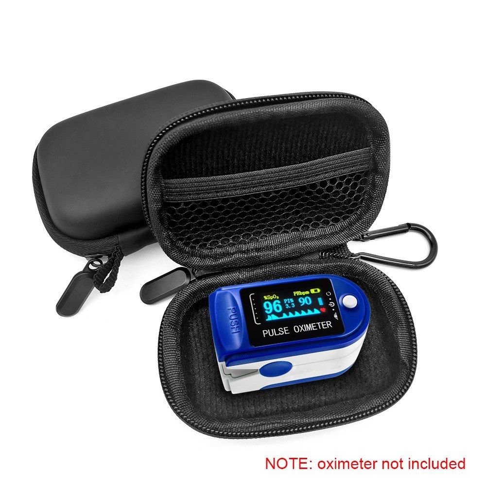 Quality EVA material oximeter storage case, waterproof and shockproof. With carabiner for easy hanging and carry. The inside mesh pocket to keep your other accessories neat and organized.