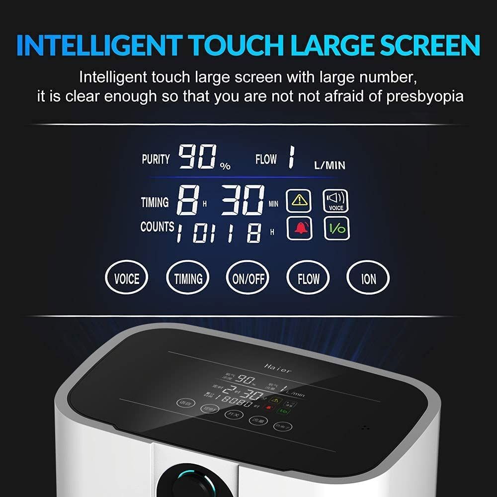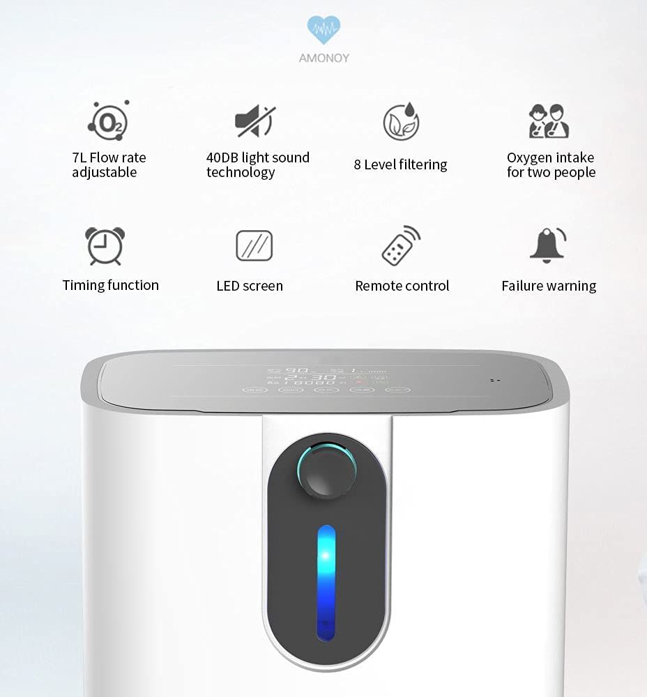 【1-7L氧气流量可调】1L/m:90%±3;2L/m: 75%; 3L/m: 60%; 4L/m: 50%; 5升/平方米:40%;6升/平方米:35%;7L/m: 30%, HD LED 触摸屏易于阅读和远红外遥控。生产日期 2021 年 5 月 1 日