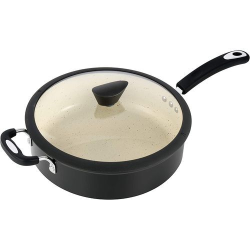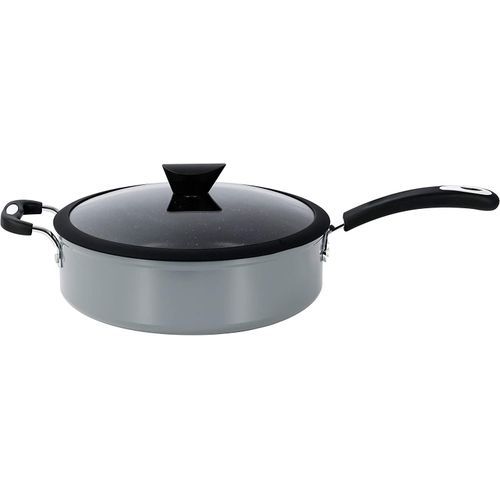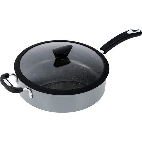 Utilizing a custom-formulated stone-derived coating from Germany, the 5 L (5.3 Quart) All-In-One Stone Earth Sauce Pan by Ozeri reigns with its ability to deliver non-stick perfection while remaining absolutely free of toxic substances such as APEO, GenX fluorinated chemicals, PFBS, PFOS, PFOA, and the lesser known NMP and NEP. According to the FDA, many of these chemicals constitute a worrisome class of nonstick compounds that have found their way into the food chain. Both EPA and FDA research on exposure to some of these compounds suggest associations with several kinds of cancers and health issues. Although the harmful PFOA and PFOS acids are being phased out of production, non-stick coatings today are often made with the aid of a new generation of fluoropolymers, known as GenX fluorinated chemicals and PFBS, which the EPA has more recently cited as suggestive of cancer and when consumed, may affect the kidneys, blood, immune system, liver and developing fetuses. Also of concern are APEO chemicals, which are restricted in Germany due to potential toxicity. By not using these ‘forever chemicals,' the Stone Earth Sauce Pan's German-made coating stands ahead of the curve, achieving the highest marks for food safety and environmental health. The Stone Earth Sauce Pan's coating is applied using a water-based technique that is also free of the lesser-known but potentially harmful chemicals NMP and NEP, sometimes found in traditional cookware. The Sauce Pan is far more durable and scratch-resistant than other non-stick surfaces, and always a breeze to clean. The Stone Earth Sauce Pan is made of a heavy-gauge aluminum core that allows for quick and even cooking without hot spots. It boasts a magnetized bottom for use on induction stoves, a heat-resistant silicone-coated handle, a side helper handle, and a tempered glass lid with a steam release vent and heat-resistant knob. Coating made by Weilburger GmbH, Germany. Pan assembled in China..