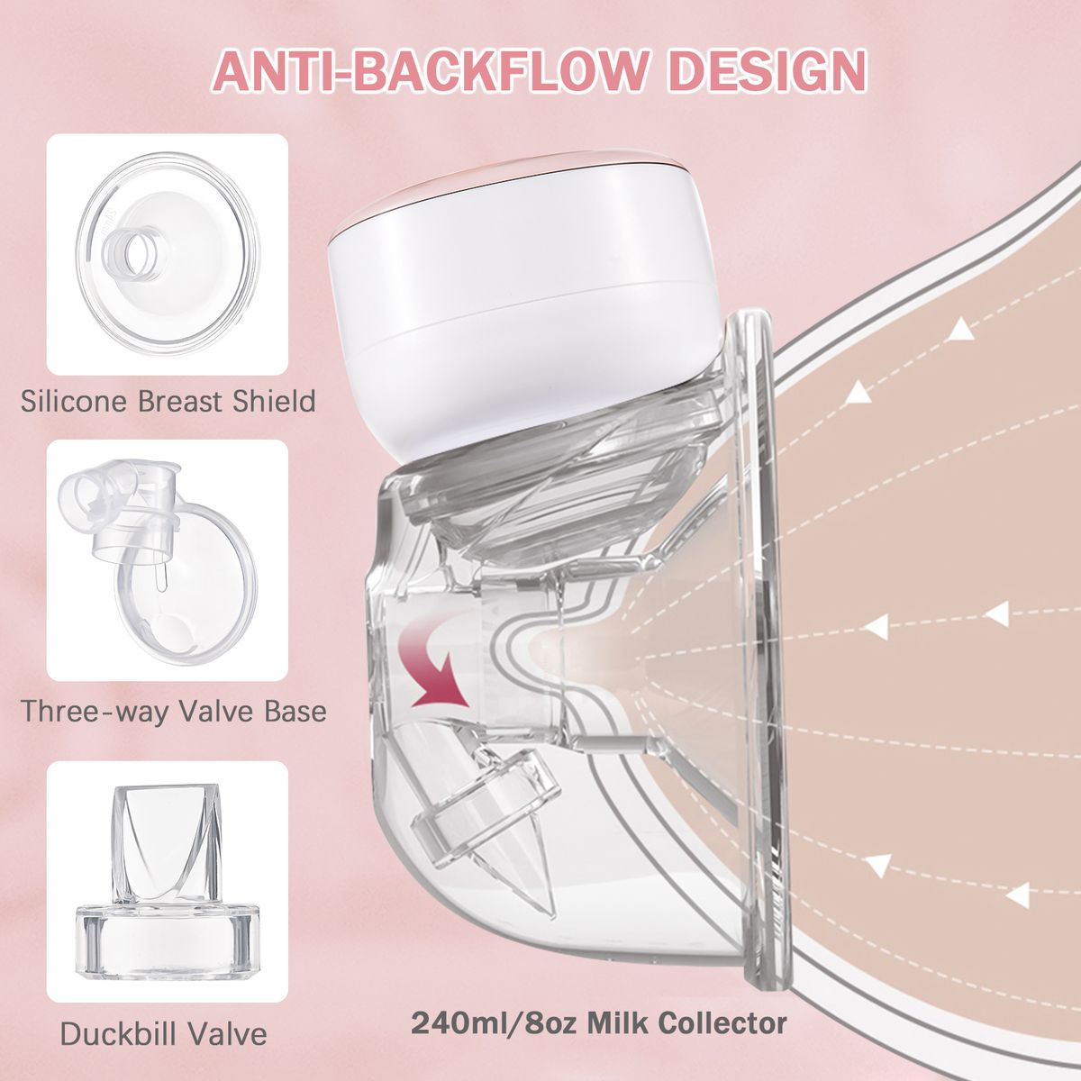 【Anti-Backflow & No Leakage】Adopts anti-backflow design and a seal system, the wearable breast pump can prevent the breast milk from being contaminated and leakage. The breast cup can store 240ml/8oz milk. Comes with 10pcs milk storage bags for storing more milk.