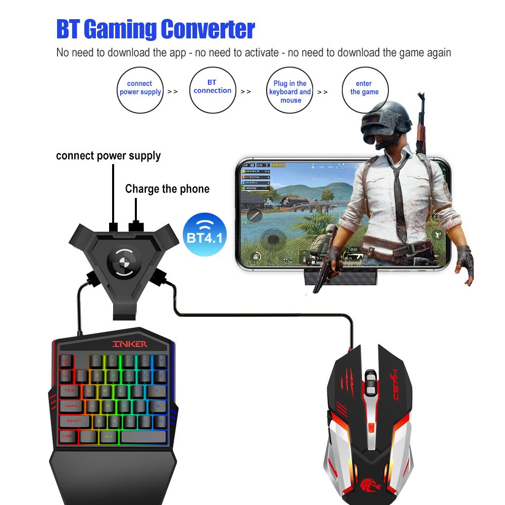 Supports BT4.1 connection, no need to download the app and to active, which delivers higher response speed and excellent transmission speed for game playing, allowing users to perform skills more precise and accurate during game with the keyboard and mouse such as automatically gun.