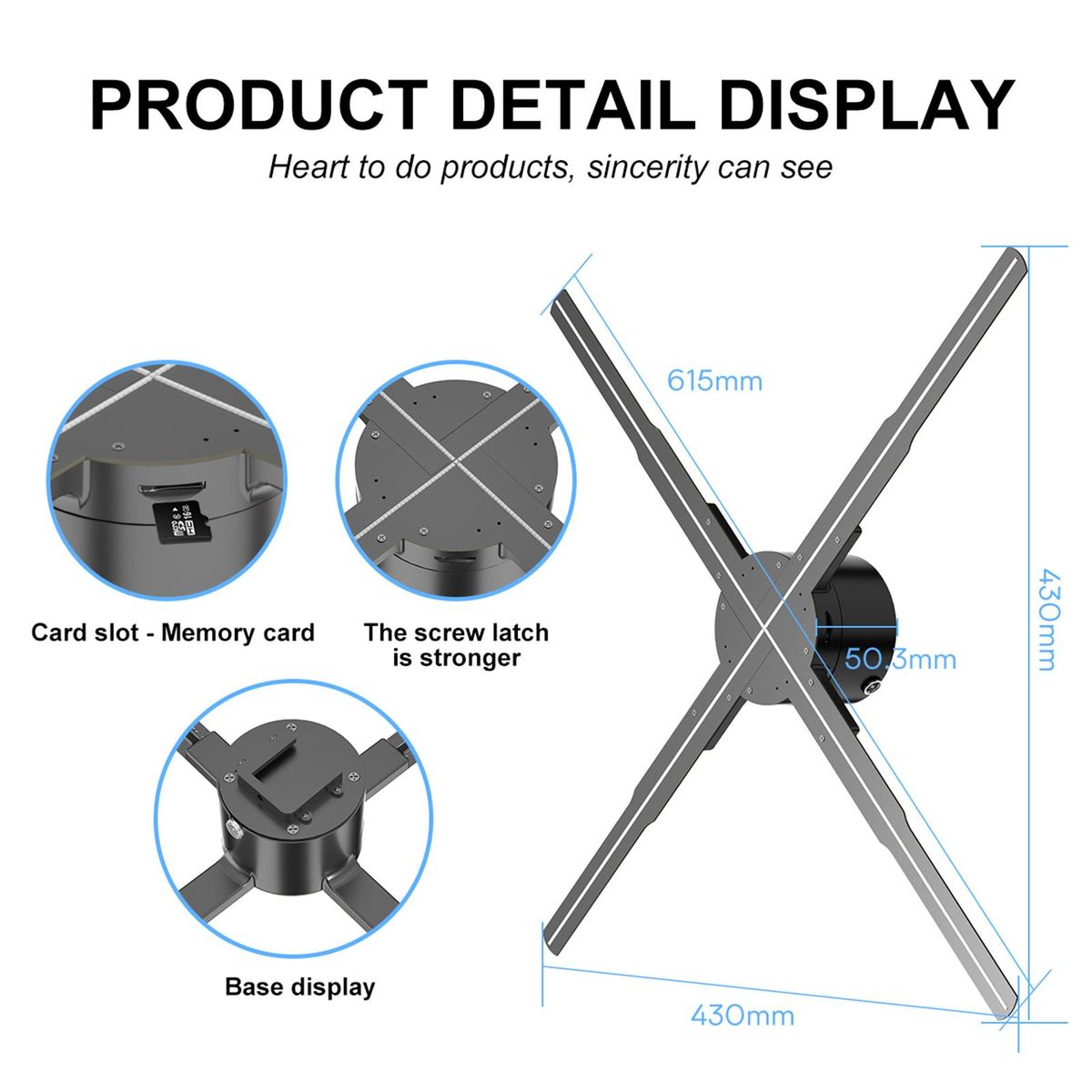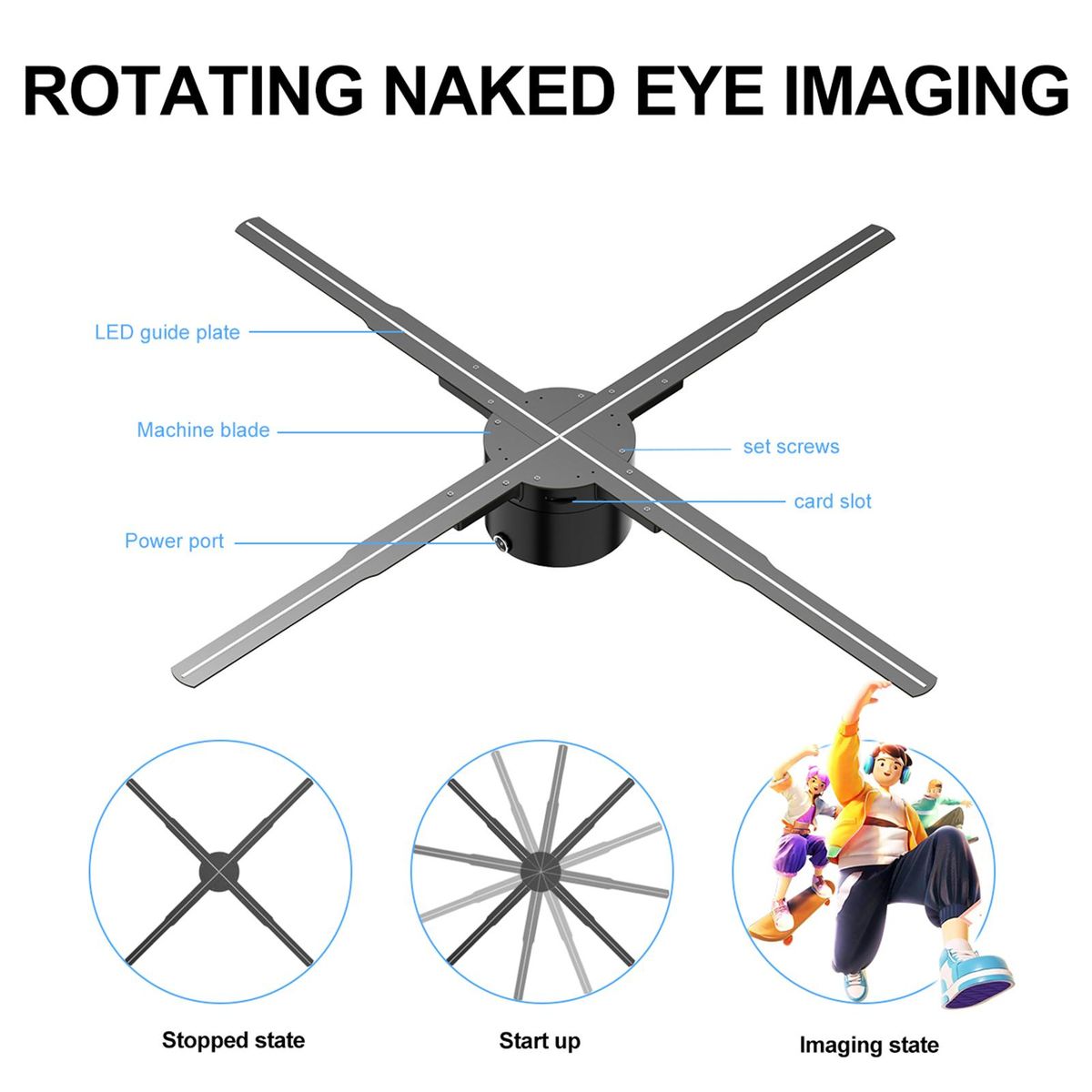 Buy P62 3D Hologram Projector Advertising Display Fan Wall-mounted Player 3D Naked Eye 2K HD LED Photo Video Fan with 722pcs LED Light Beads Remote Control Sign Real-time Screen Display for Business Shop Store Bars Exhibition Entertainment Holiday Events 16GB in Nigeria