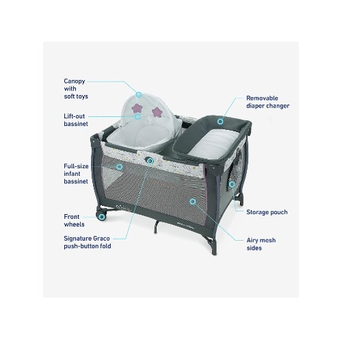 The Graco Pack 'N Play cot will keep your little one comfortable and secure. With a bassinet that folds and requires no extra parts. Ideal for nap-time, taking with you while on vacation or traveling.