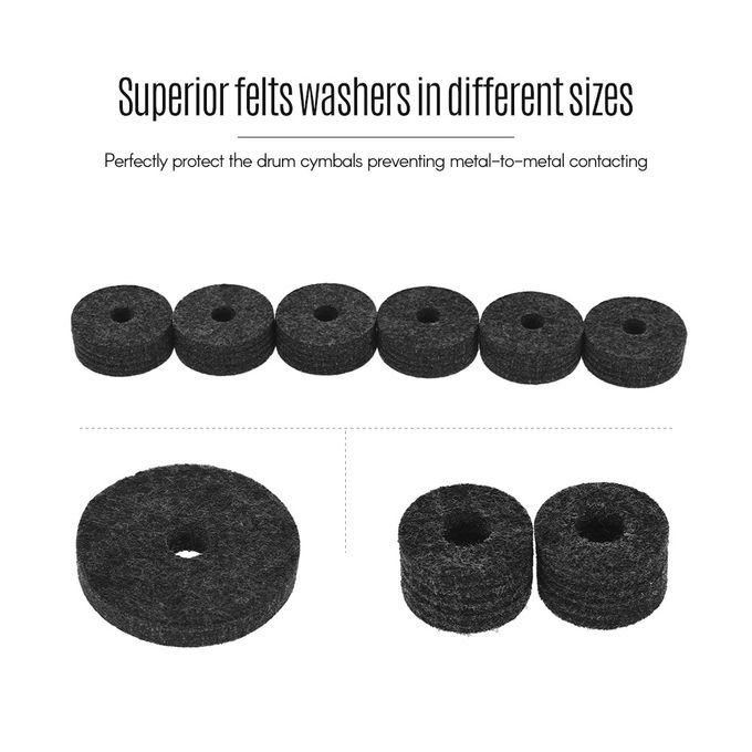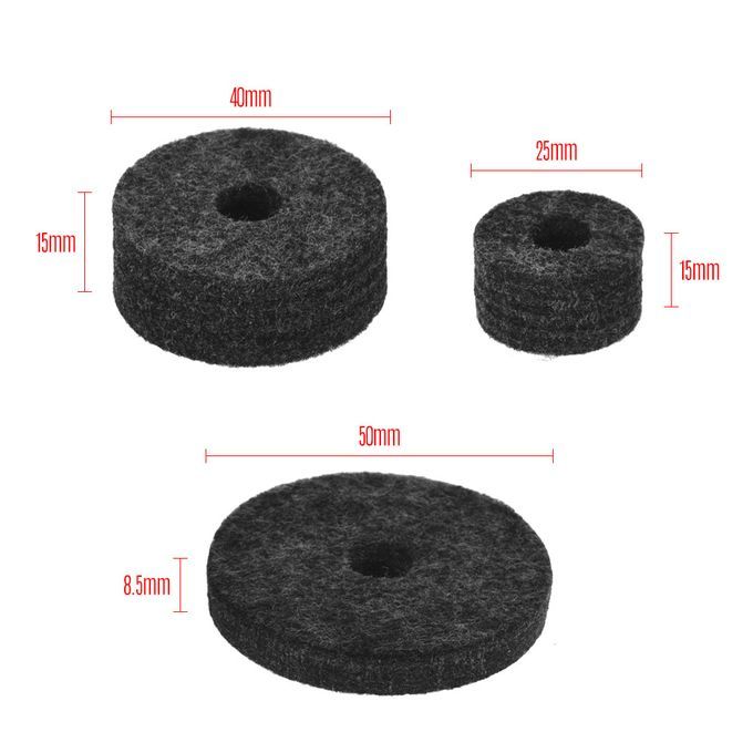 Package comes with 3 cymbal sleeves, 3 cymbal wing nuts, 3 metal gaskets, 1 felt pad in diameter 50mm, 2 felt pads in diameter 25mm and 6 felt pads in diameter 40mm, to meet your various demand.