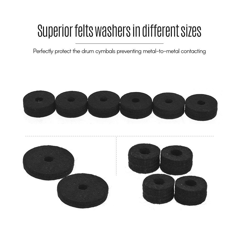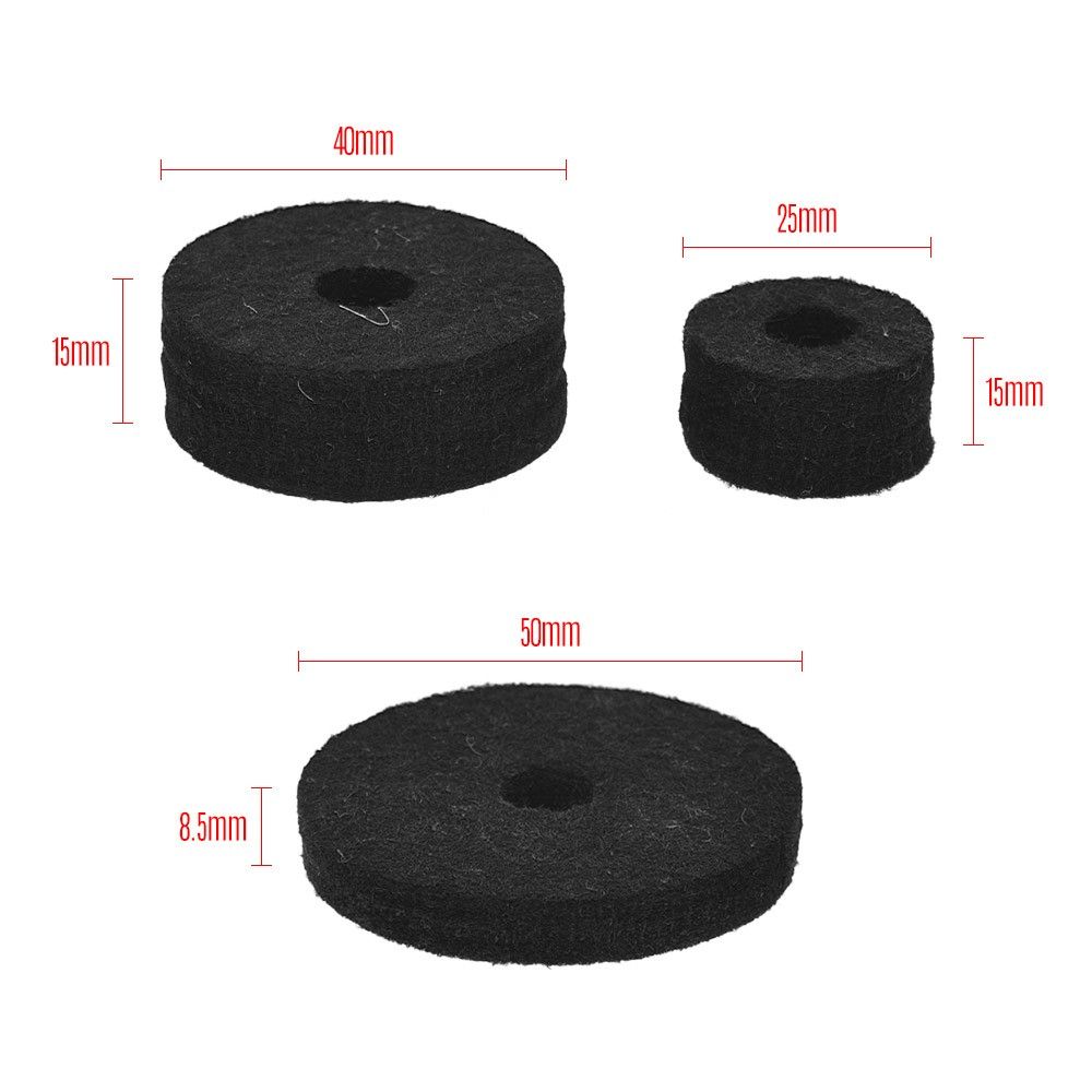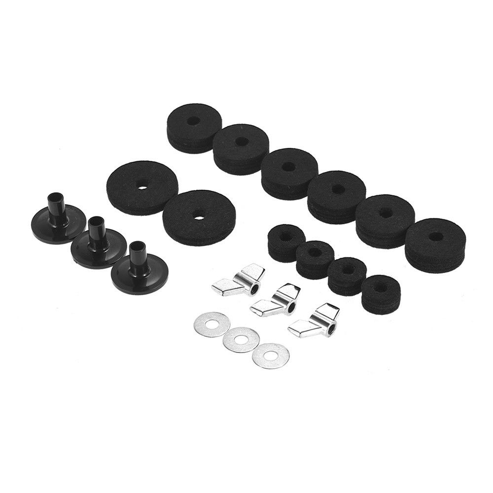 Package comes with 3 cymbal sleeves, 3 cymbal wing nuts, 3 metal gaskets, 2 felt pad in diameter 50mm, 4 felt pads in diameter 25mm and 6 felt pads in diameter 40mm, to meet your various demand.