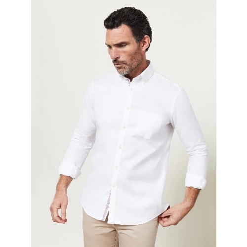 100% CottonSlim fitSelvedge tapeButton-down collarFull-length sleeveCasual