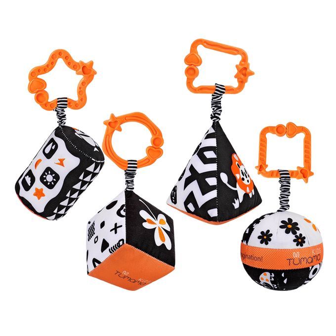 4 different shapes.These are so cute to attract baby attention. soft rattle toys, develop baby imaginations and sensory.